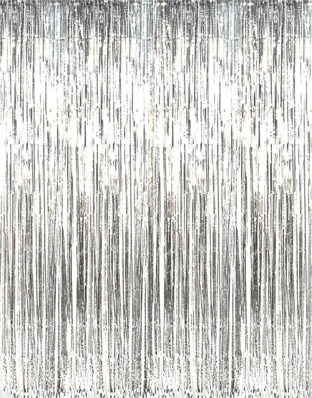 GOER 3.2 ft x 9.8 ft Metallic Tinsel Foil Fringe Curtains(Silver,1 packs)