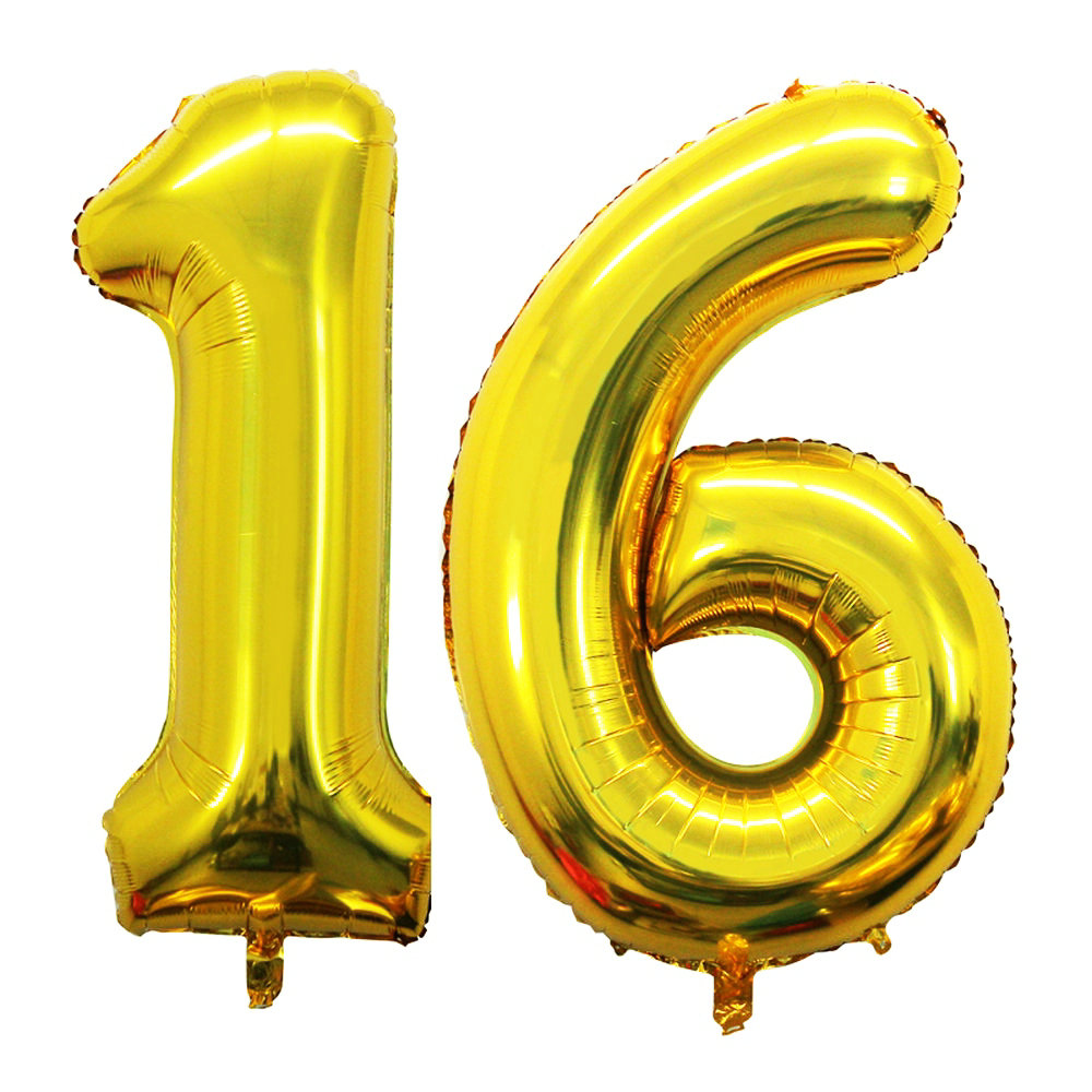 OER 42 Inch Gold 16 Number Balloons for 16th Birthday Party Decorations